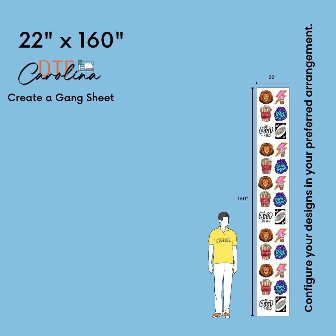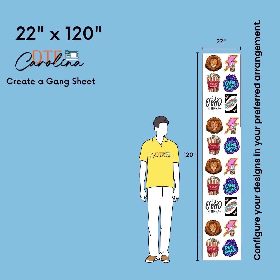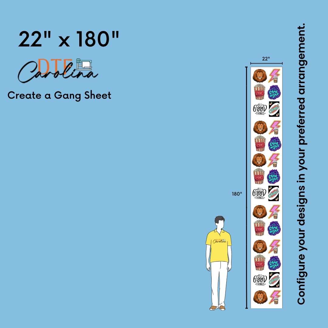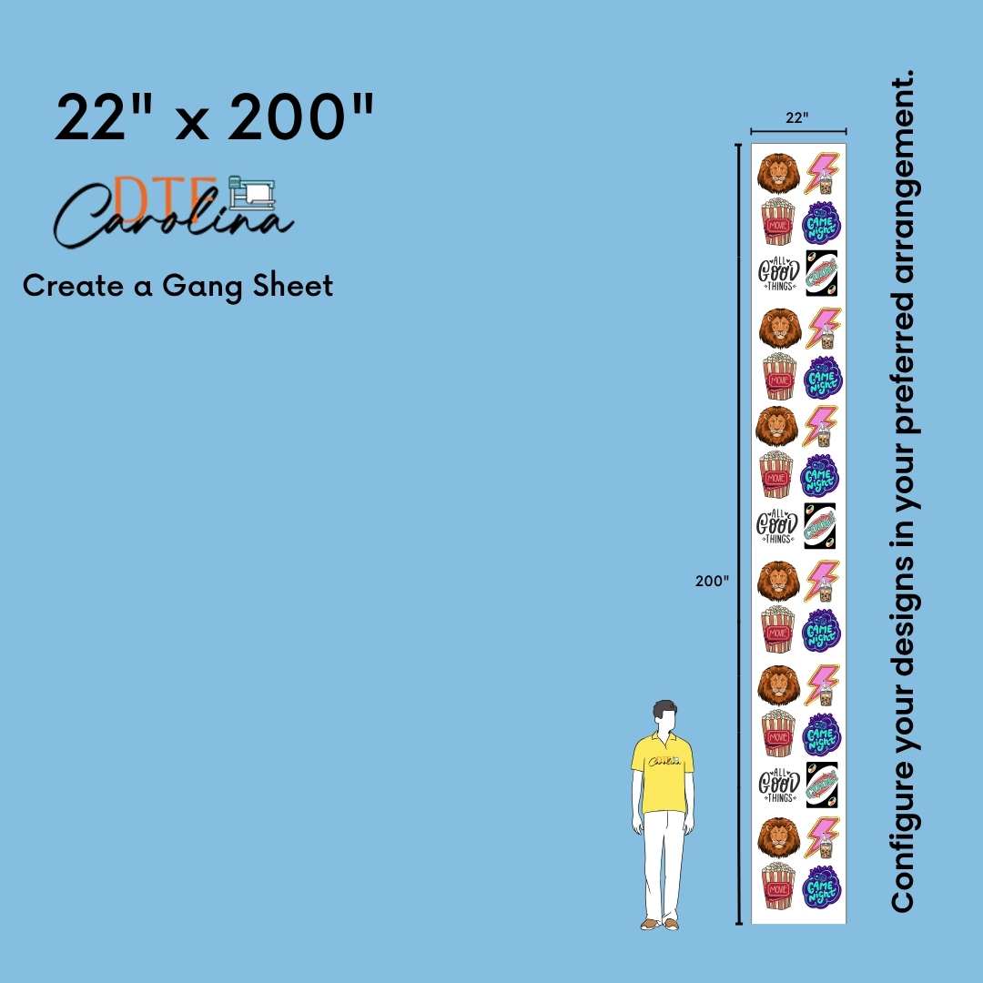 • In gang sheet designs, width must be maximum 22''