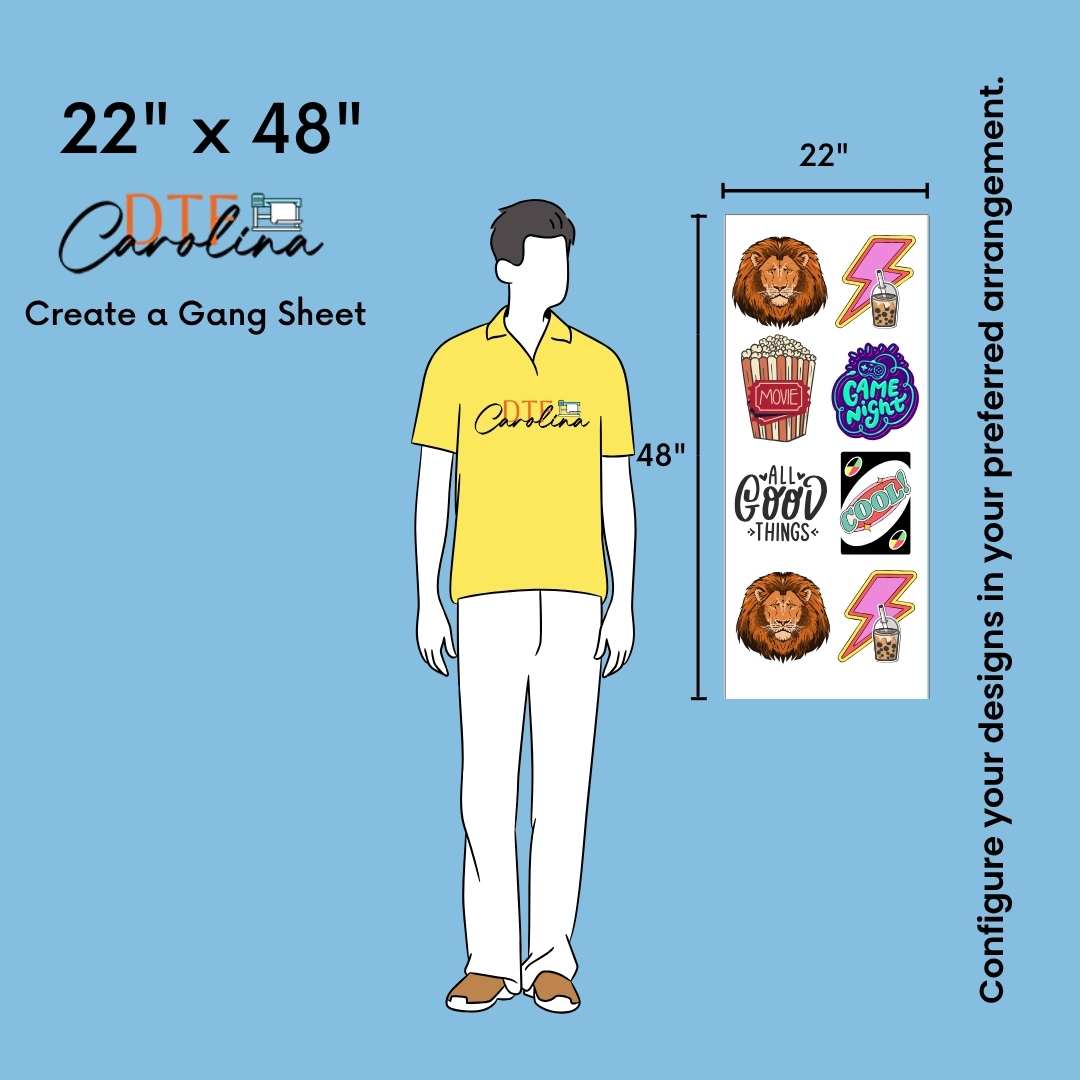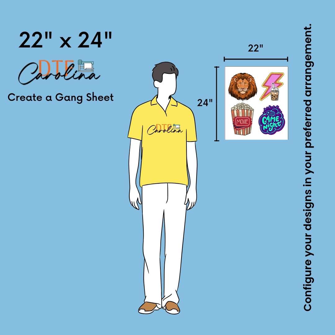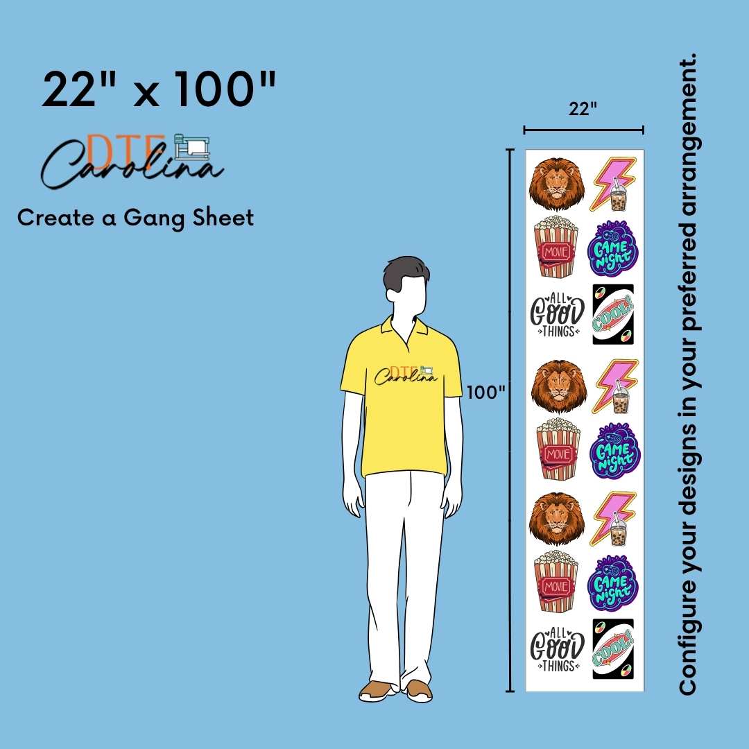 • In gang sheet designs, width must be maximum 22''