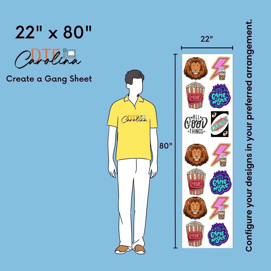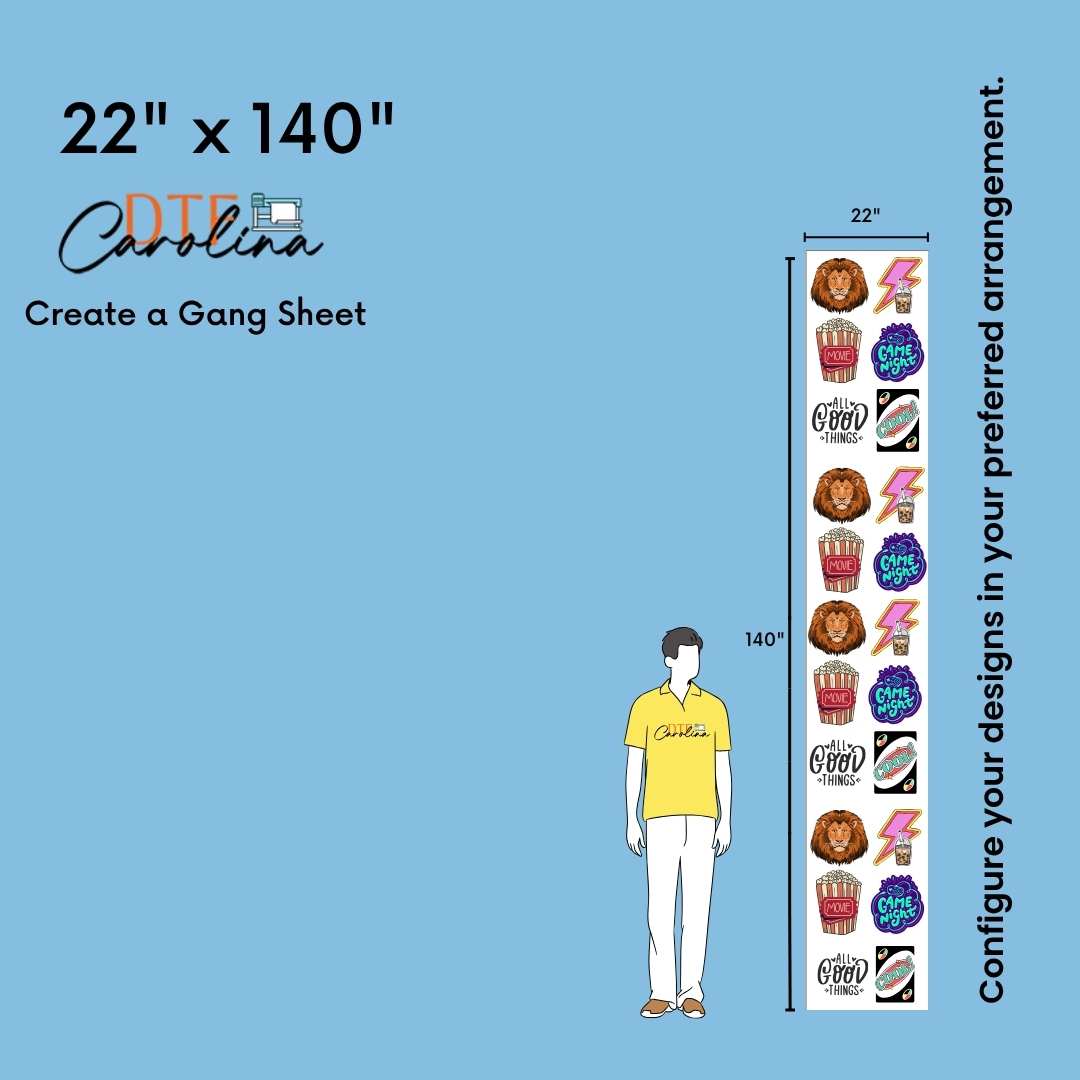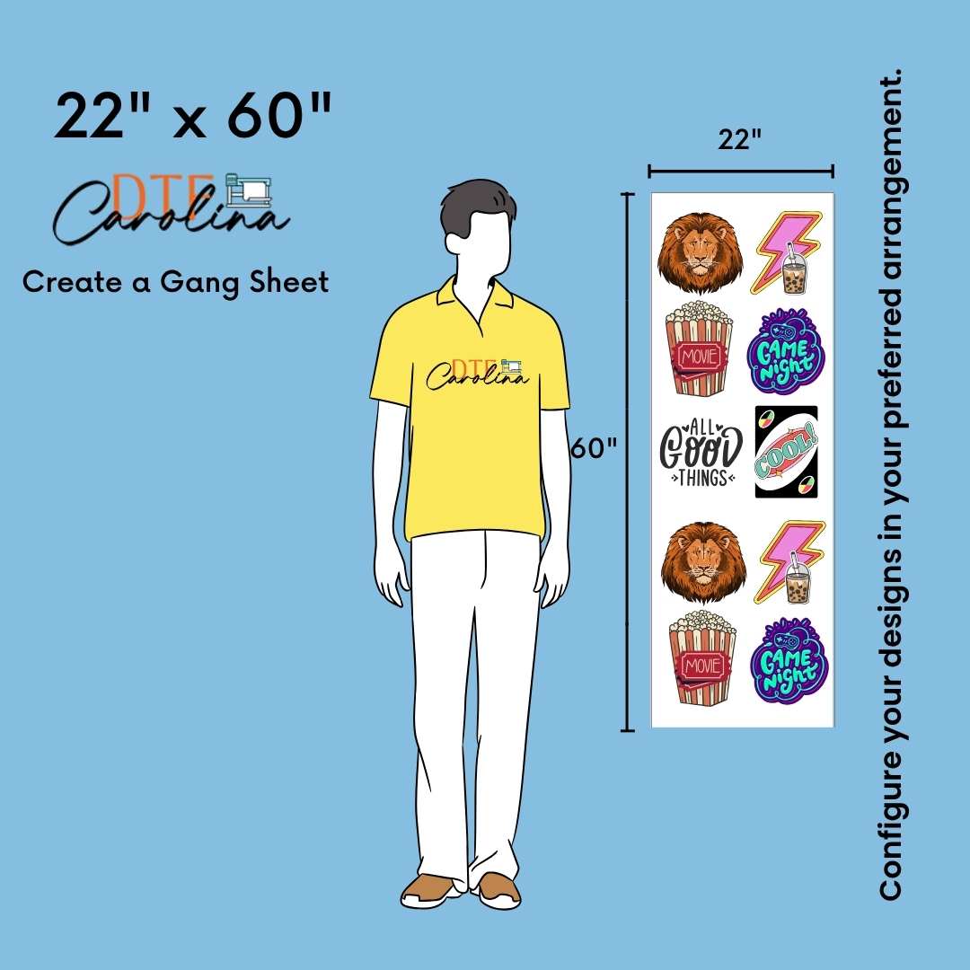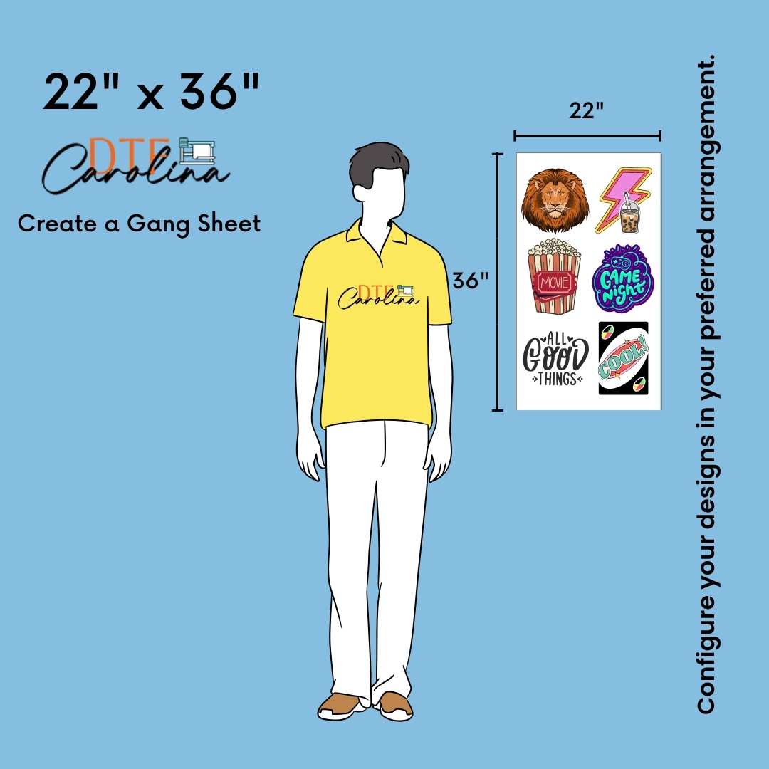 • In gang sheet designs, width must be maximum 22''